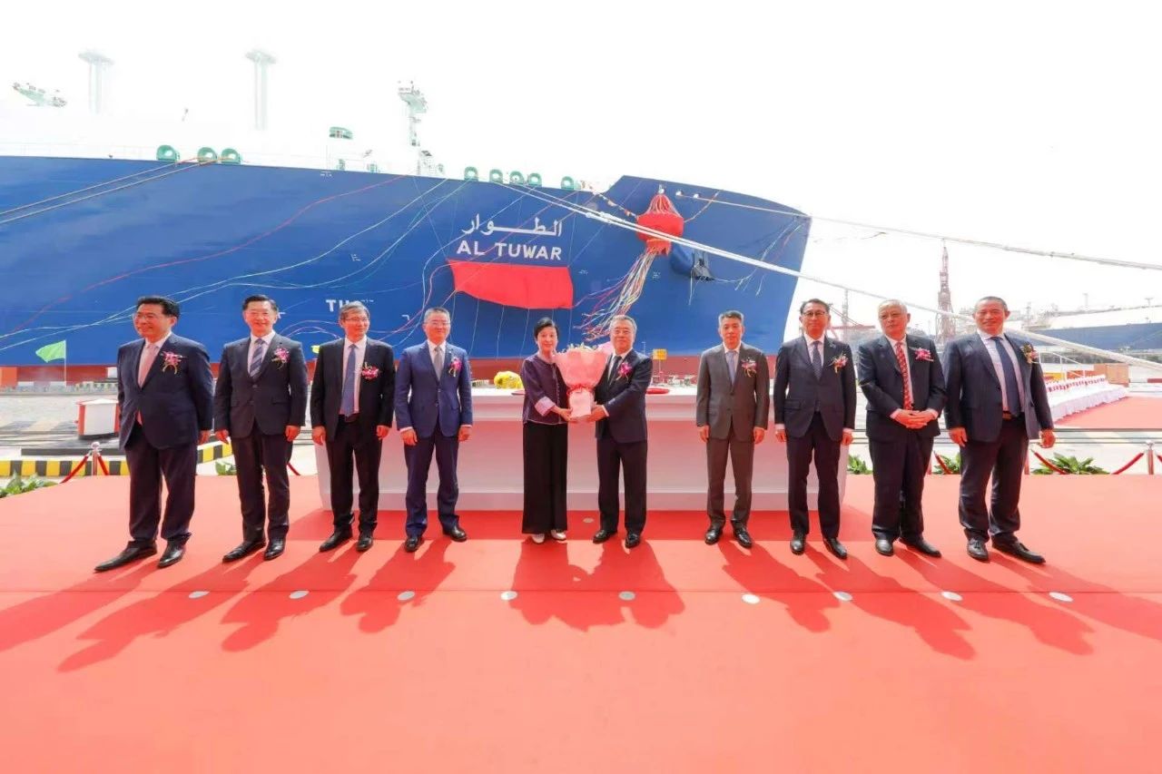 4月17日,中國船舶集團有限公司黨組副書記、董事、總經理王國強出席卡塔爾能源項目17.4萬立方米LNG運輸船“AL TUWAR(阿爾圖瓦爾)”號命名儀式。招商局集團黨委副書記、董事、總經理石岱出席命名儀式并為新船命名致頌詞。中船集團黨組成員、副總經理胡賢甫出席儀式并致辭,招商局集團黨委委員、副總經理馮波鳴,中遠海運集團領導馮波,日本郵船副社長河野晃等嘉賓出席命名儀式。