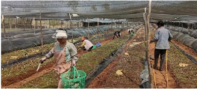 在這充滿希望的季節(jié)里,鶴慶縣六合鄉(xiāng)松坪村羊肚菌種植基地一壟壟羊肚菌破土而出,頭戴獨(dú)特的褐色“網(wǎng)格帽”,在陽(yáng)光下閃爍著光芒,為松坪村繪就一幅生機(jī)勃勃的致富畫卷。