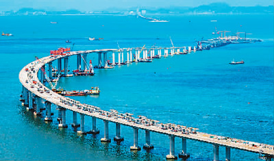 港珠澳大橋主體工程全線貫通,是中國橋梁屹立世界“橋梁之巔”的縮影。世界最長(zhǎng)跨海大橋、跨度最大的公鐵兩用橋、首座公鐵兩用跨海大橋……近年來,中國橋梁界為世界橋梁創(chuàng)造了眾多的“世界第一”。數(shù)據(jù)顯示,目前世界排名前10位的跨海長(zhǎng)橋中,中國占據(jù)6座。而在建造技術(shù)上,中國已擁有千米級(jí)斜拉橋設(shè)計(jì)施工成套技術(shù)、跨海特大跨徑鋼箱梁懸索橋關(guān)鍵技術(shù)等多項(xiàng)尖端技術(shù)。
