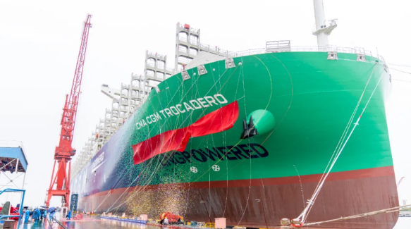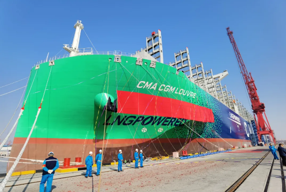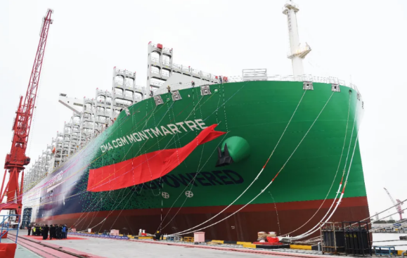 2017年9月,中國(guó)船舶集團(tuán)與法國(guó)達(dá)飛集團(tuán)簽署九艘23000TEU超大型集裝箱船建造合同,截至目前,已交付八艘。 該系列船均由中國(guó)船舶集團(tuán)七〇八所自主研發(fā)設(shè)計(jì),是首次引入液化天然氣雙燃料系統(tǒng)的超大型集裝箱船。因?yàn)樗执笥汁h(huán)保,是名副其實(shí)的海上“巨無(wú)霸”,我們都叫它“綠巨人”!