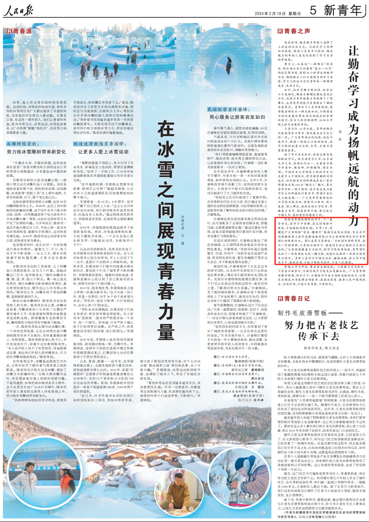 今年1月,首艘國(guó)產(chǎn)大型郵輪“愛達(dá)·魔都號(hào)”圓滿完成商業(yè)首航,背后是中國(guó)船舶集團(tuán)上海外高橋造船有限公司大型郵輪項(xiàng)目設(shè)計(jì)青年團(tuán)隊(duì)的默默付出。團(tuán)隊(duì)成員王高帥說:“當(dāng)時(shí)國(guó)內(nèi)資料有限,每次一拿到資料,大家就分組學(xué)習(xí),再通過交流匯報(bào)的方式進(jìn)行總結(jié)。”從零經(jīng)驗(yàn)摸著石頭過河,到學(xué)習(xí)吸收再創(chuàng)造,青年團(tuán)隊(duì)見證了一張張圖紙變成一艘巨輪,該團(tuán)隊(duì)也獲評(píng)一星級(jí)全國(guó)青年文明號(hào)。青年人在學(xué)習(xí)中增長(zhǎng)知識(shí)、錘煉品格,在工作中增長(zhǎng)才干、練就本領(lǐng),才能不辱時(shí)代使命,不負(fù)人民期望。